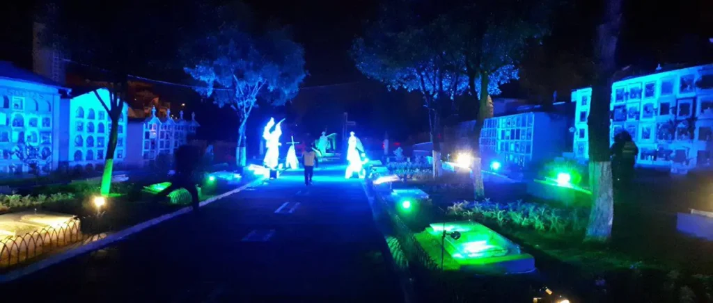 Una noche en el cementerio” propone un recorrido de aproximadamente un kilómetro dentro del camposanto, dividido en seis estaciones o “hitos” que resaltan las tradiciones y costumbres de la ciudad.