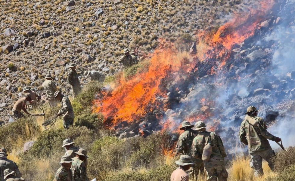 Un contingente del Regimiento de Infantería 4 “Loa” de Uyuni controló el incendio forestal registrado en el Cerro Tunupa, municipio de Tahua (Potosí), que dejó más de un centenar de familias damnificadas y miles de hectáreas de pastizales consumidas por el fuego.