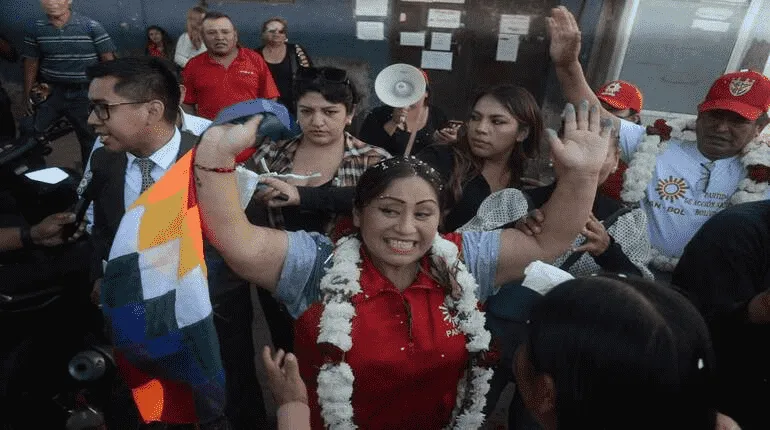 La exdirigenta fue recibida con banda y guirnaldas por dirigentes del “evismo” y manifestó que sale “más fortalecida” del encierro. Señaló: “Me han encarcelado y amordazado, pero hemos resistido; lo que no nos mata, nos hace más fuertes. Salimos más fortalecidos para luchar por todas las mujeres”.