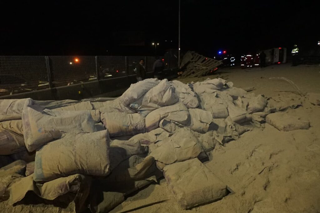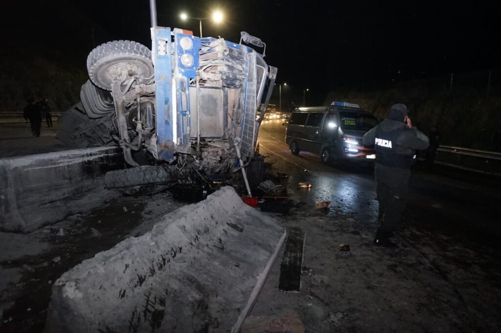 El hecho se registró poco después de las 21:30, en el sector conocido como la curva del diablo. De acuerdo con los primeros informes, el conductor del camión perdió el control del vehículo, se estrelló contra la baranda de cemento y descendió varios metros, esparciendo la carga de cemento en el camino.
