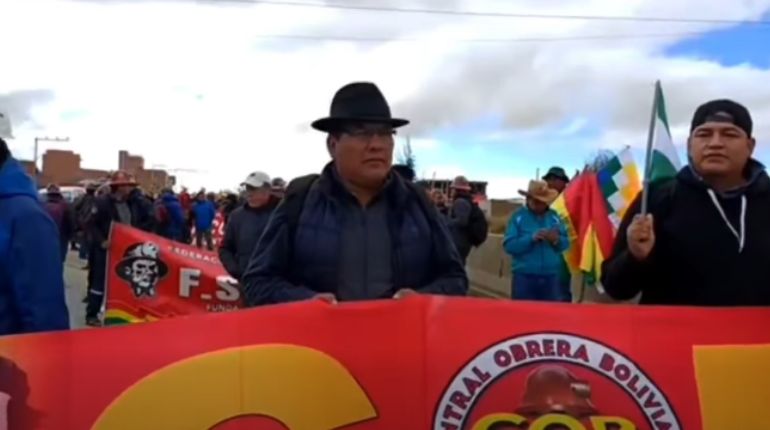 Las declaraciones se producen en medio de la marcha nacional “Bolivia No Se Vende”, que comenzó este sábado desde Calamarca. Trabajadores mineros de la COB y campesinos de la CSUTCB avanzan hacia La Paz exigiendo la abrogación del decreto que elimina la subvención a los carburantes.