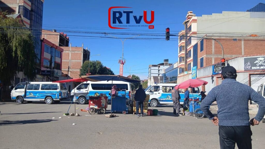 La capital orureña registró baja circulación vehicular y bloqueos en sectores estratégicos como el centro urbano y alrededores del Mercado Bolívar.