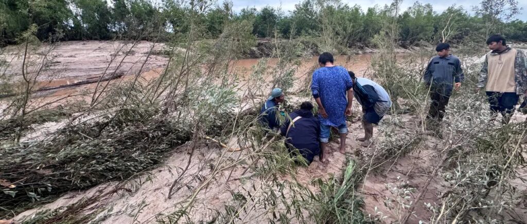 Lara informó que 10 comunidades resultaron afectadas, con casas inundadas de lodo, pérdidas de animales y pertenencias, y personas atrapadas en sus viviendas. “Me reportan que hay 3 personas fallecidas que han sido encontradas, enterradas en la palizada, y habría ocho personas más desaparecidas”, indicó la autoridad. En la comunidad de Espejos, los pobladores rescataron a una vaca atrapada entre los restos arrastrados por la crecida, con ayuda del vicepresidente y vecinos.