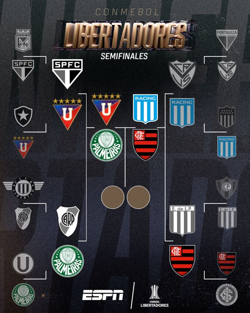 Racing Club, Flamengo, Palmeiras y Liga de Quito disputarán las semifinales de la Copa Libertadores entre el 21 y el 29 de octubre. La final se jugará el 29 de noviembre en Lima. el encuent
