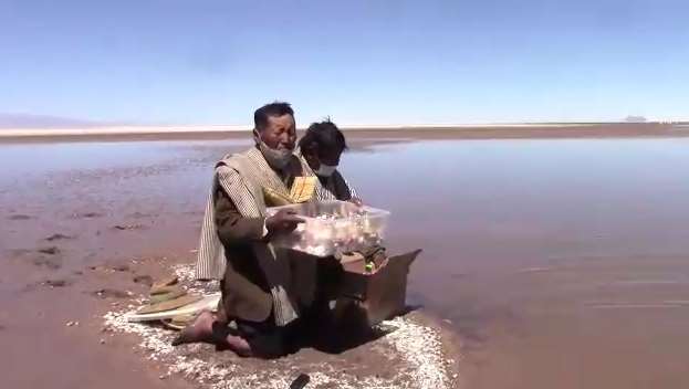 Ceremonia ancestral en el lago Poopó